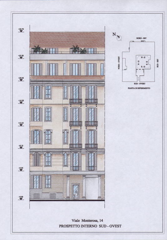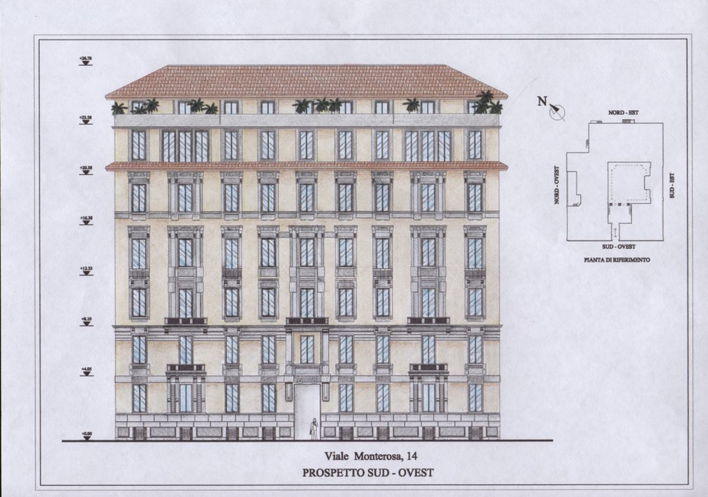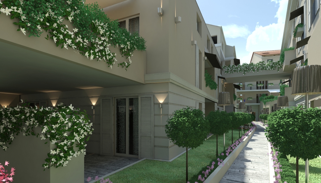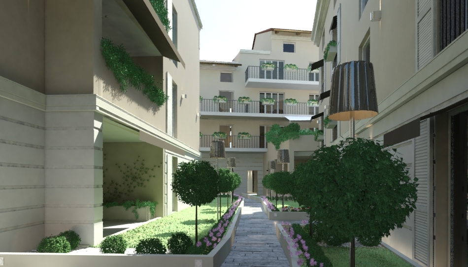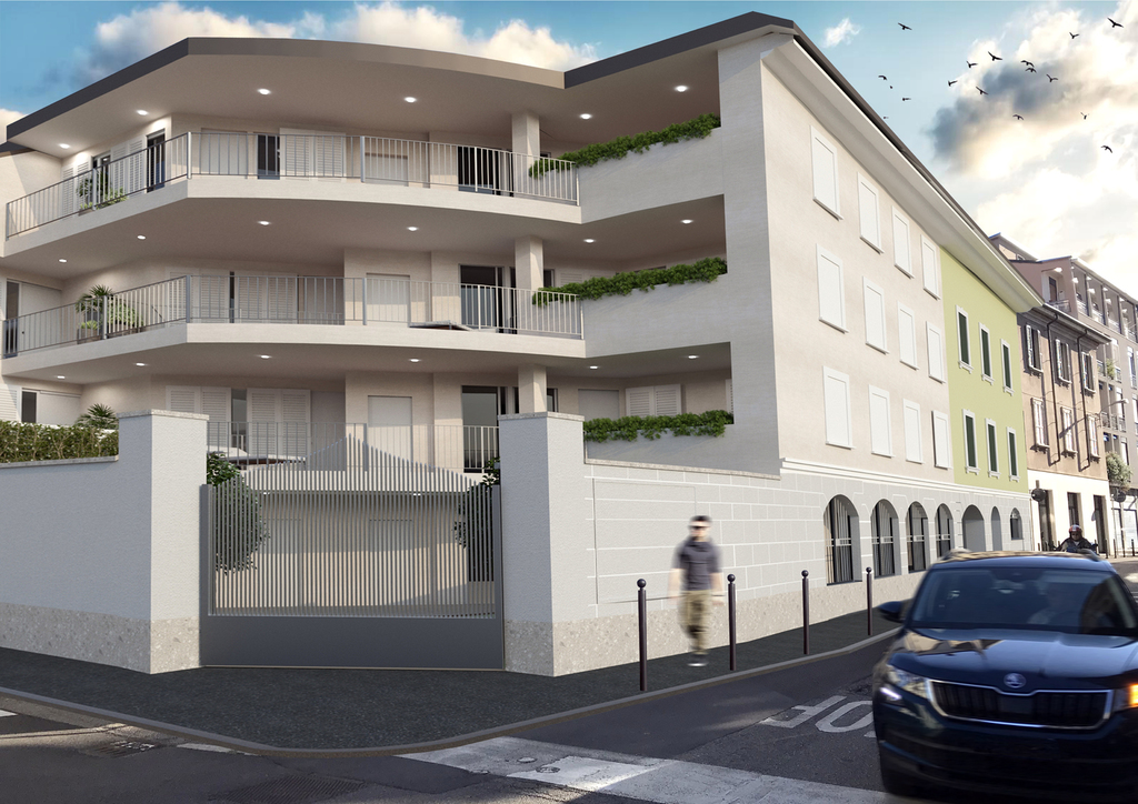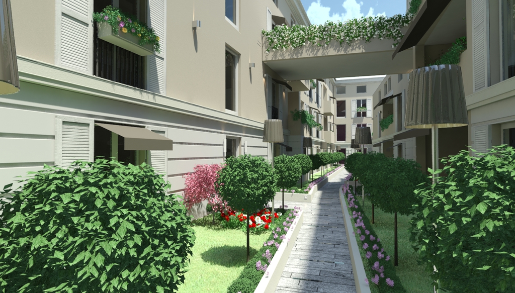 La composizione delle facciate si presenterà sobria ma rigorosa; i riquadri a rilievo segnano le superfici di sottili gradazioni. L’essenzialità stilistica degli edifici sarà dettata oltre da precise scelte progettuali anche a sottolineare la semplicità degl’interni che ne caratterizza l’intero progetto