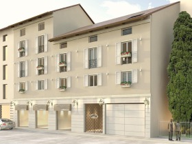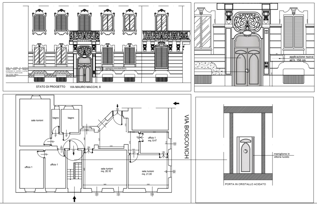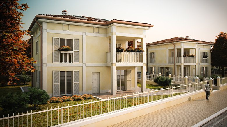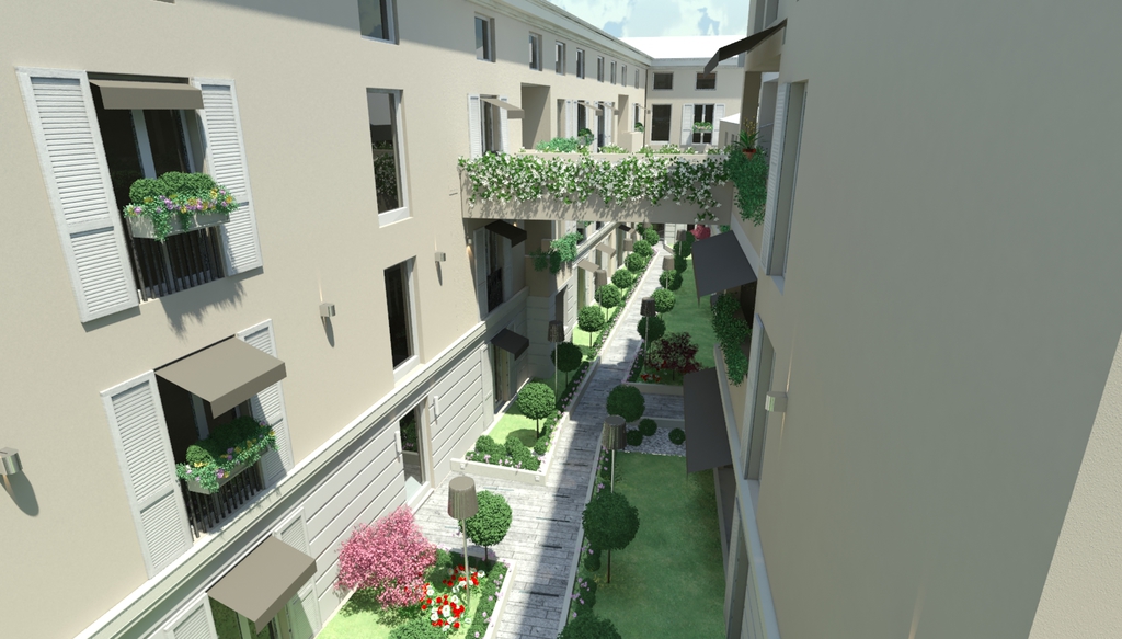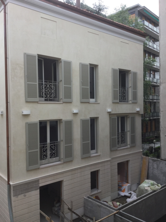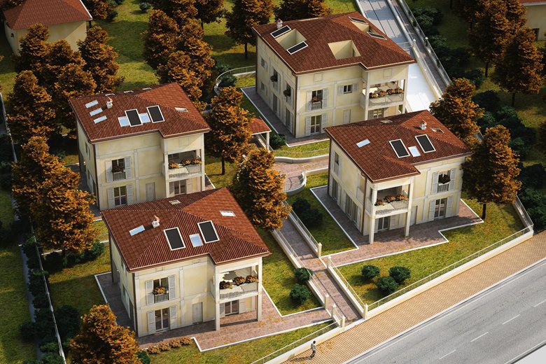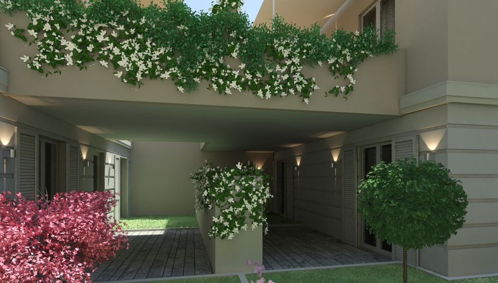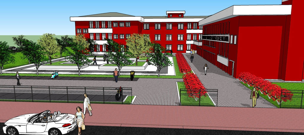 La composizione delle facciate si presenterà sobria ma rigorosa; i riquadri a rilievo segnano le superfici di sottili gradazioni. L’essenzialità stilistica degli edifici sarà dettata oltre da precise scelte progettuali anche a sottolineare la semplicità degl’interni che ne caratterizza l’intero progetto
