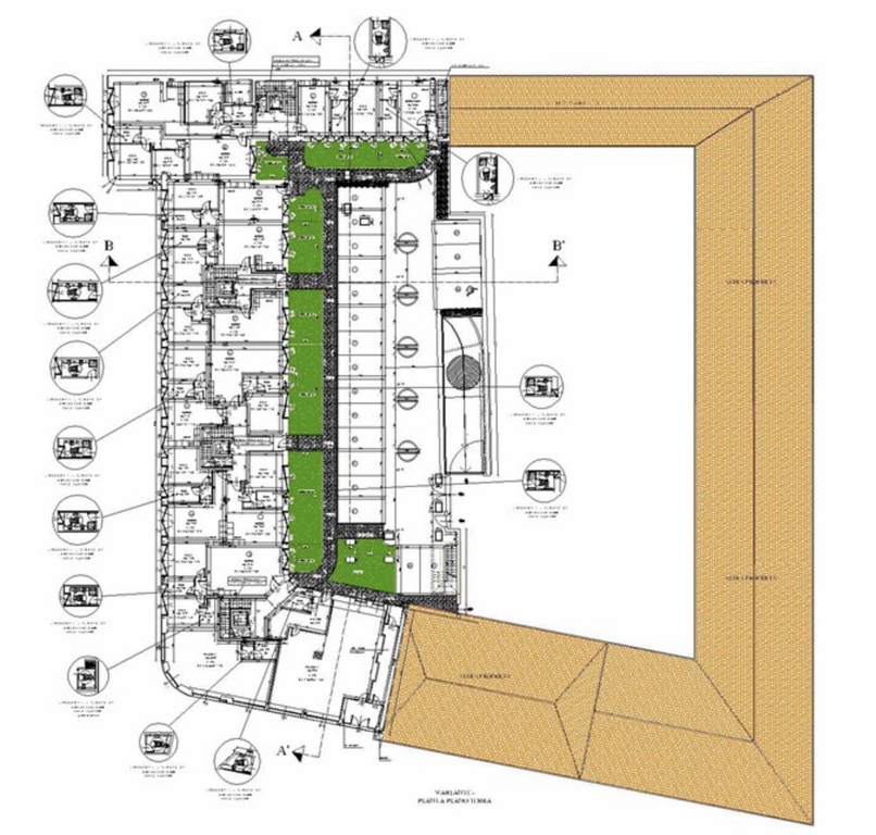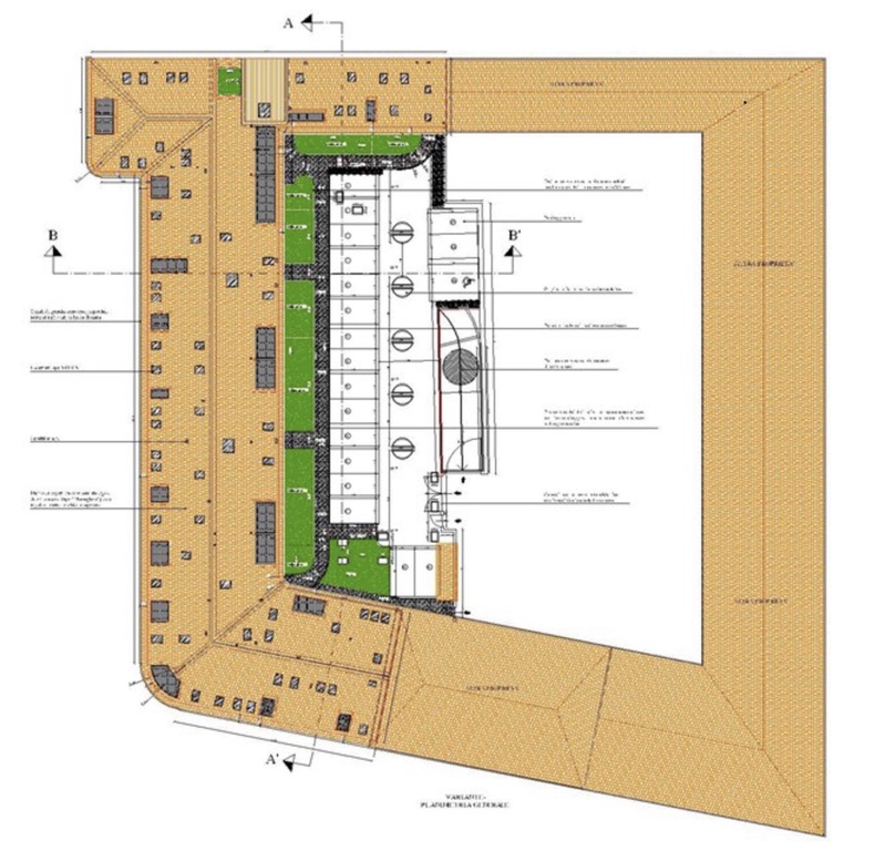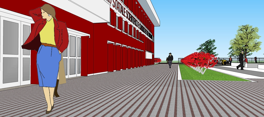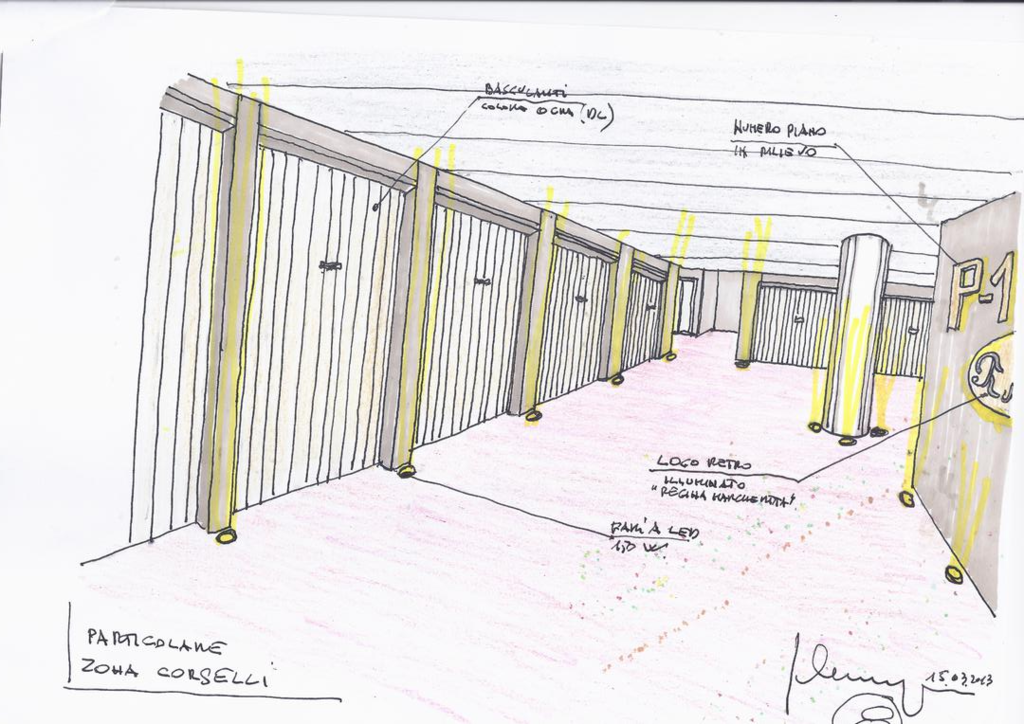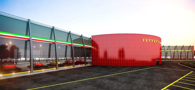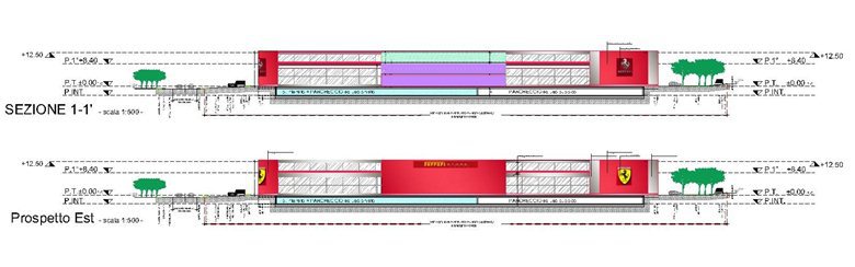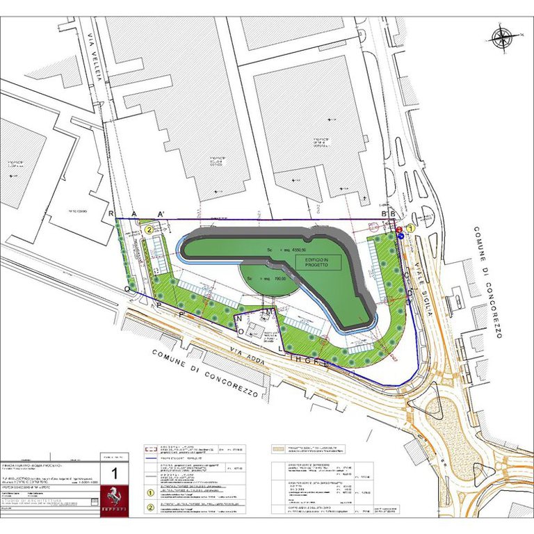 L'area in oggetto di intervento, ubicata nel Comune di Monza, ha tutte le caratteristiche per lo sviluppo di una forma, che nella memoria collettiva, ricorda il circuito Monzese... L'intervento è finalizzato all'utilizzo dei più moderni sistemi di risparmio energetico, in grado di convertire l'energia solare in energia elettrica mediante effetto fotovoltaico, attraverso pannelli preassemblati e applicati sulle pareti perimetrali della struttura esterna, in colore rosso Ferrari. Il sistema geotermico sarà un ulteriore fonte di risparmio energetico, garantendo sia il riscaldamento sia il raffrescamento dell'intervento. L'edificio è progettato per essere individuato di giorno e di notte, attraverso una particolare lilluminazione, che partendo dai pannelli si svilupperà fino al logo della più famosa casa automobilistica Italiana di auto sportive.