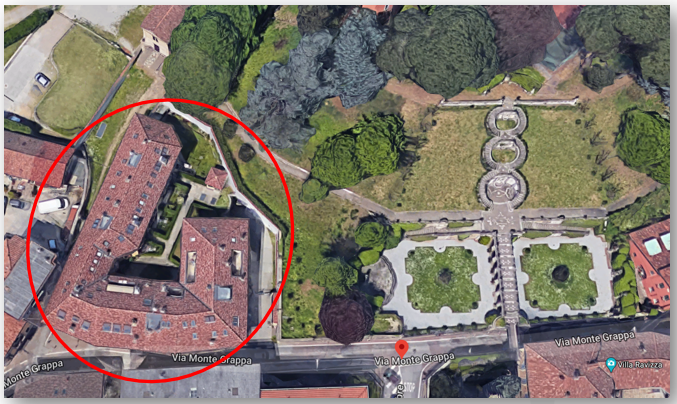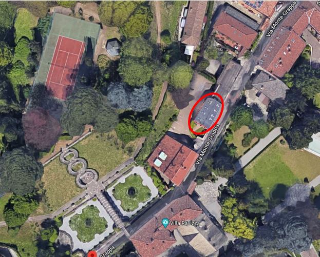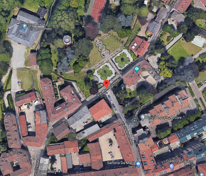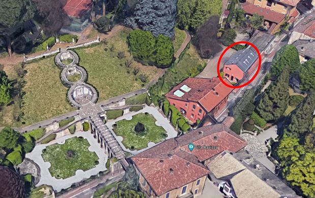 L'edificio è situato nel contesto storico di arcore nei pressi del giardino del parco di Villa Borromeo e Villa Ravizza. Il giardino di quest'ultima fu creato nei primissimi decenni del XX secolo da Mansueto Ravizza con l'aiuto dell'arch. Ludovico Belgioioso, probabilmente quando furono unificate in una unica villa alcuni fabbricati di epoca eclettica e a questa, pur circondata da un dignitoso giardino, si volle collegare la collinetta retrostante, adiacente il parco Borromeo e separata da una via pubblica. Fu un intervento paesistico sullo stile di quelli settecenteschi per la sua grandiosità. Il raccordo tra casa e giardino avviene da un ponte che corre lungi il primo piano della villa e che si allarga a terrazza e sfocia nella scenografica scalinata a tenaglia che si alza per tre rampe successive fino alla sommità della breve e ripida collinetta.